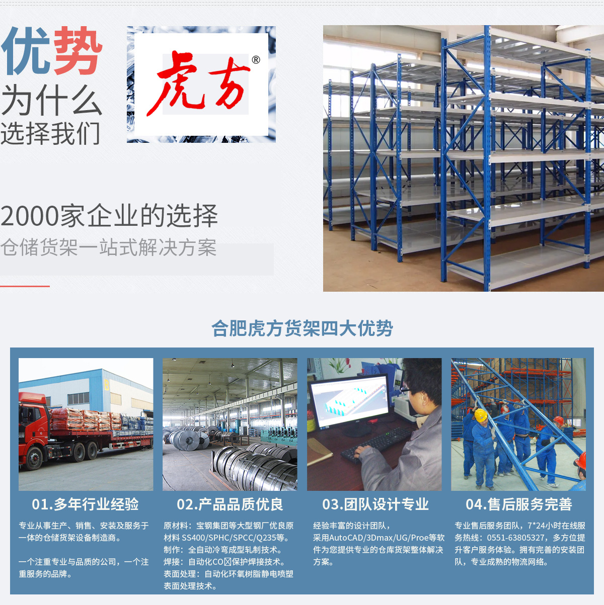 - 合肥虎方貨架有限公司從事經(jīng)營(yíng)倉(cāng)儲(chǔ)貨架、物流周轉(zhuǎn)及搬運(yùn)設(shè)備、倉(cāng)庫(kù)管理系統(tǒng)等相關(guān)產(chǎn)品的生產(chǎn)、銷售、設(shè)計(jì)、安裝及采購(gòu)集成服務(wù)。 公司主要產(chǎn)品:貨位式貨架、倉(cāng)儲(chǔ)重型貨架、擱板式貨架、閣樓式貨架、駛?cè)胧截浖堋撈脚_(tái)貨架、穿梭式...